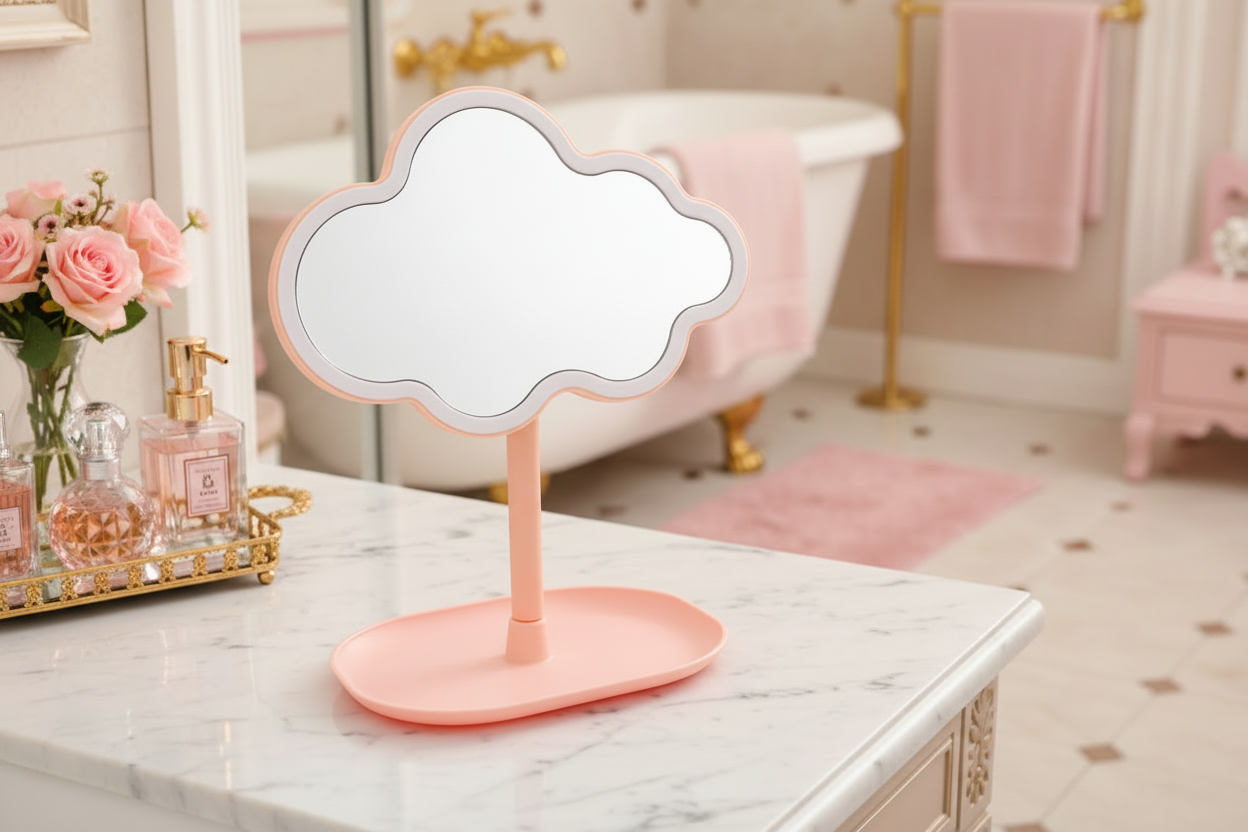 Dale un toque de ensueño a tu espacio de belleza con nuestro espejo de tocador con forma de nube , con una adorable silueta de nube y un soporte en tonos pastel. Perfecto para maquillaje, cuidado de la piel, uso en el escritorio o simplemente como un bonito detalle decorativo para tu habitación.