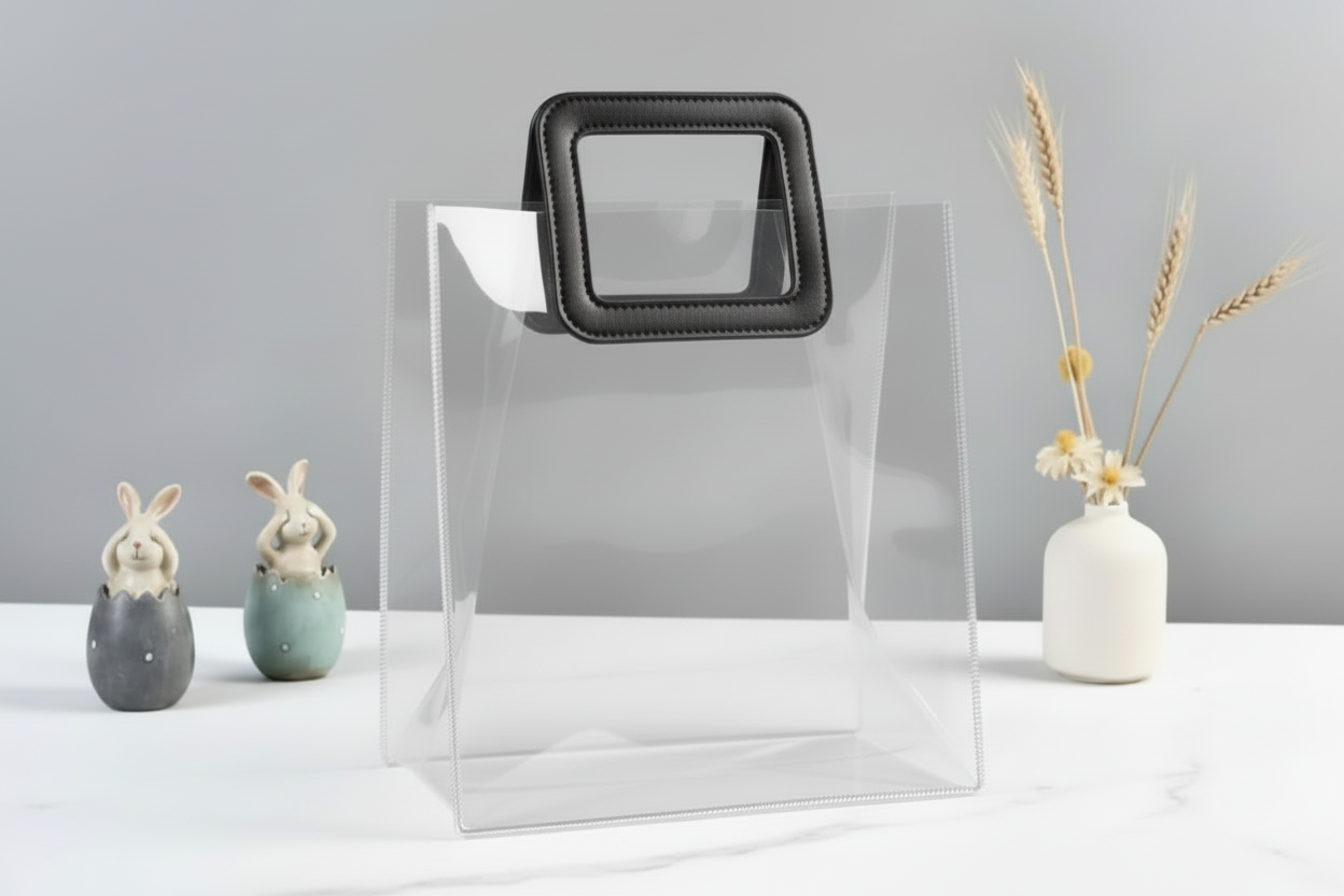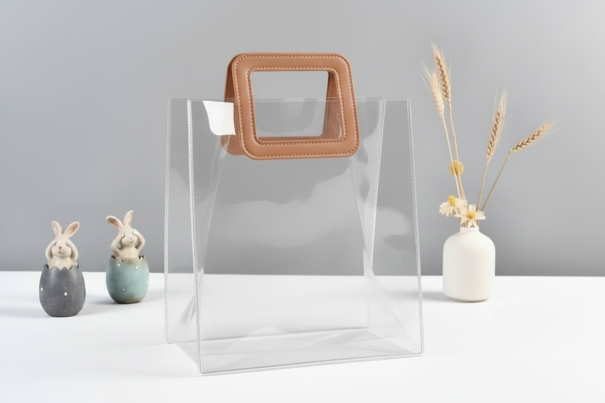 Una bolsa transparente moderna y minimalista diseñada para realzar cualquier regalo. Perfecta para flores, sets de belleza, regalos de fiesta o ocasiones especiales, esta bolsa de PVC transparente convierte cada detalle en parte de la presentación.