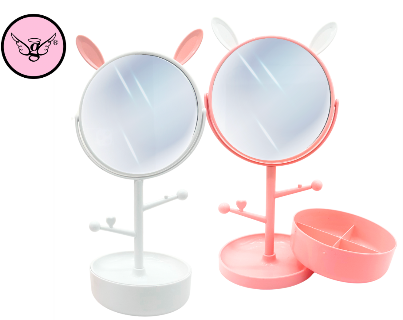 Espejo de tocador con forma de orejas de conejo y base organizadora - A05