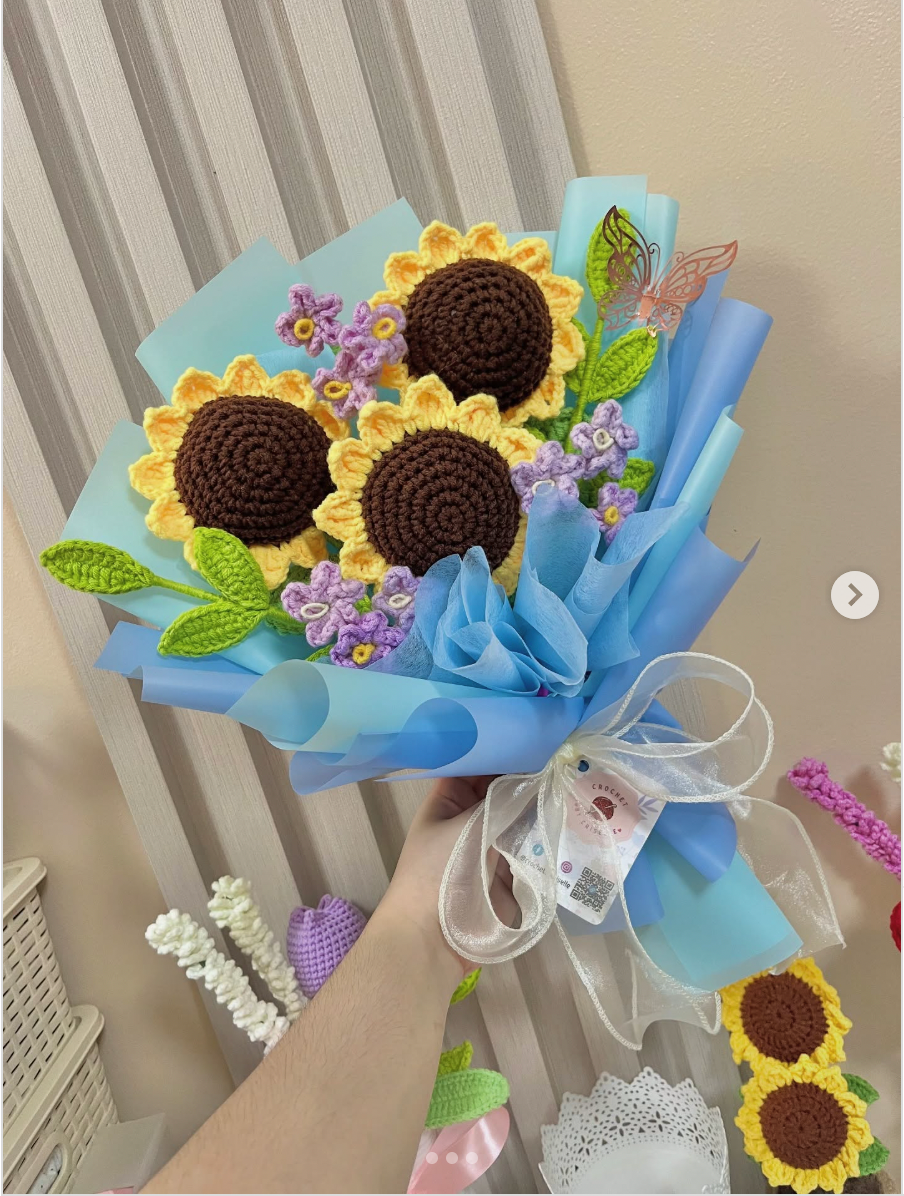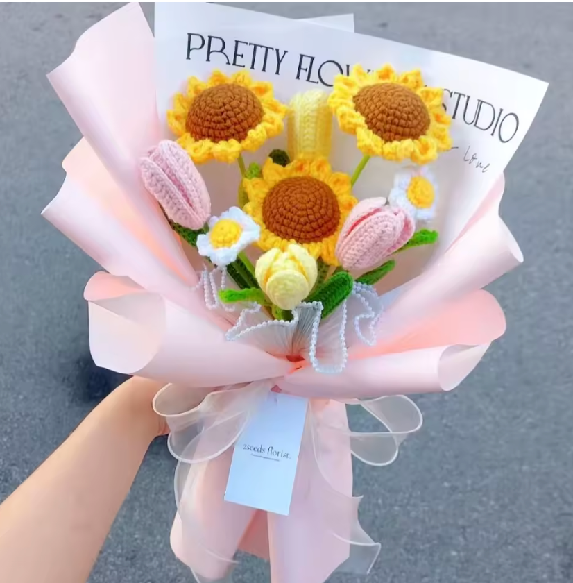 Dale un toque dulce y duradero a cualquier momento con nuestro ramo de flores de crochet hecho a mano . Este encantador arreglo incluye girasoles, tulipanes y flores pastel, cuidadosamente tejidas con hilo suave de alta calidad. Cada flor está hecha para durar para siempre: no se marchita ni se decolora, solo un hermoso recuerdo.
