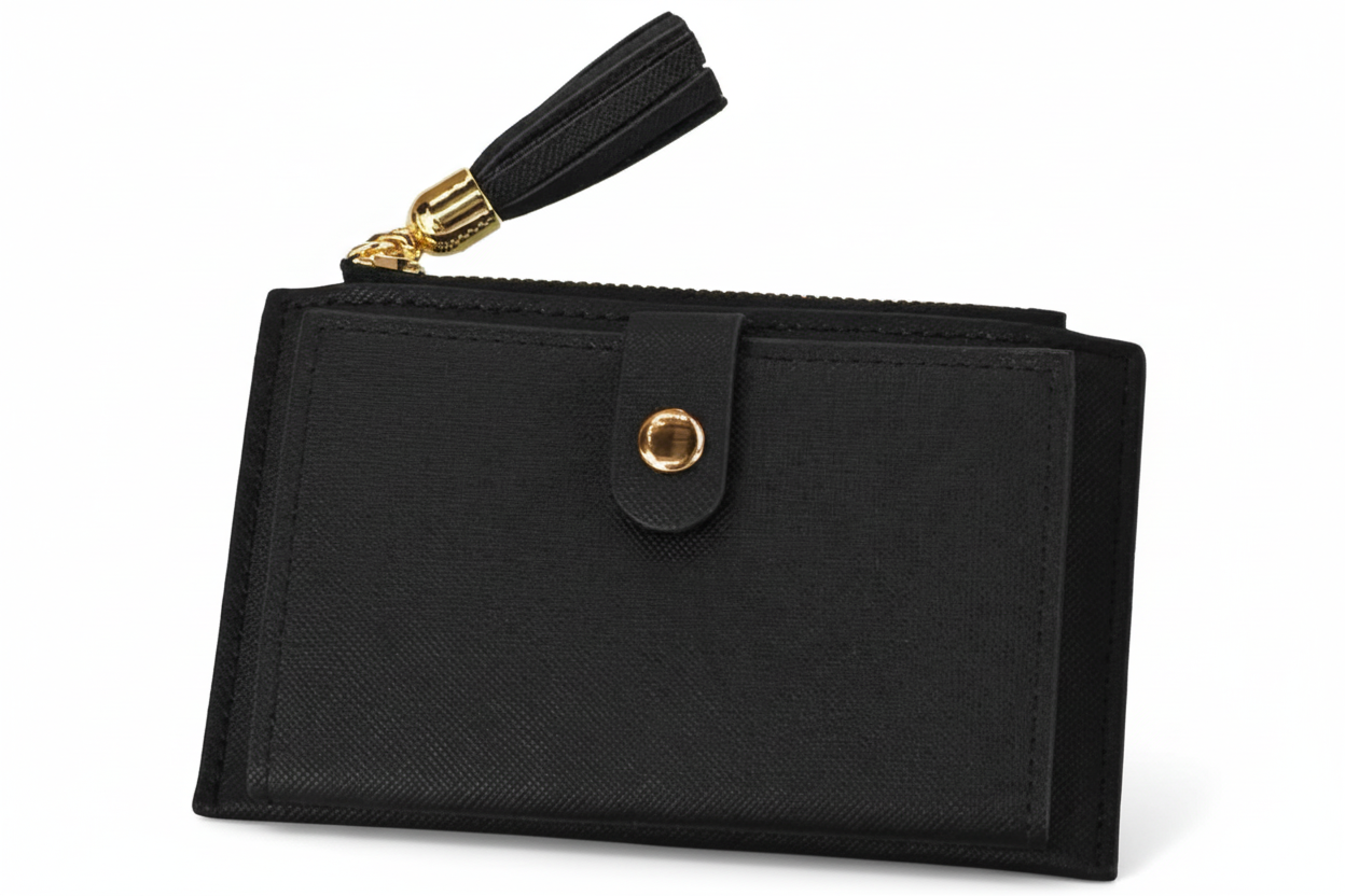 Mantén tus objetos esenciales organizados con estilo con esta elegante y práctica billetera con tarjetero 💕 Diseñada para el uso diario, combina funcionalidad, elegancia y un tamaño compacto que se adapta perfectamente a cualquier bolso.