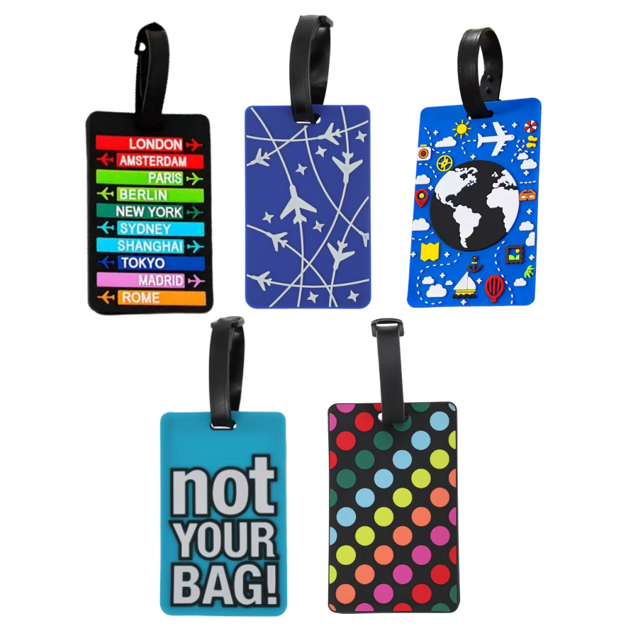 Haz que tu equipaje sea fácil de identificar con estas divertidas y coloridas etiquetas. Diseñadas para destacar, te ayudan a identificar rápidamente tu maleta, mochila o equipaje de mano, dándole un toque divertido a tus viajes.