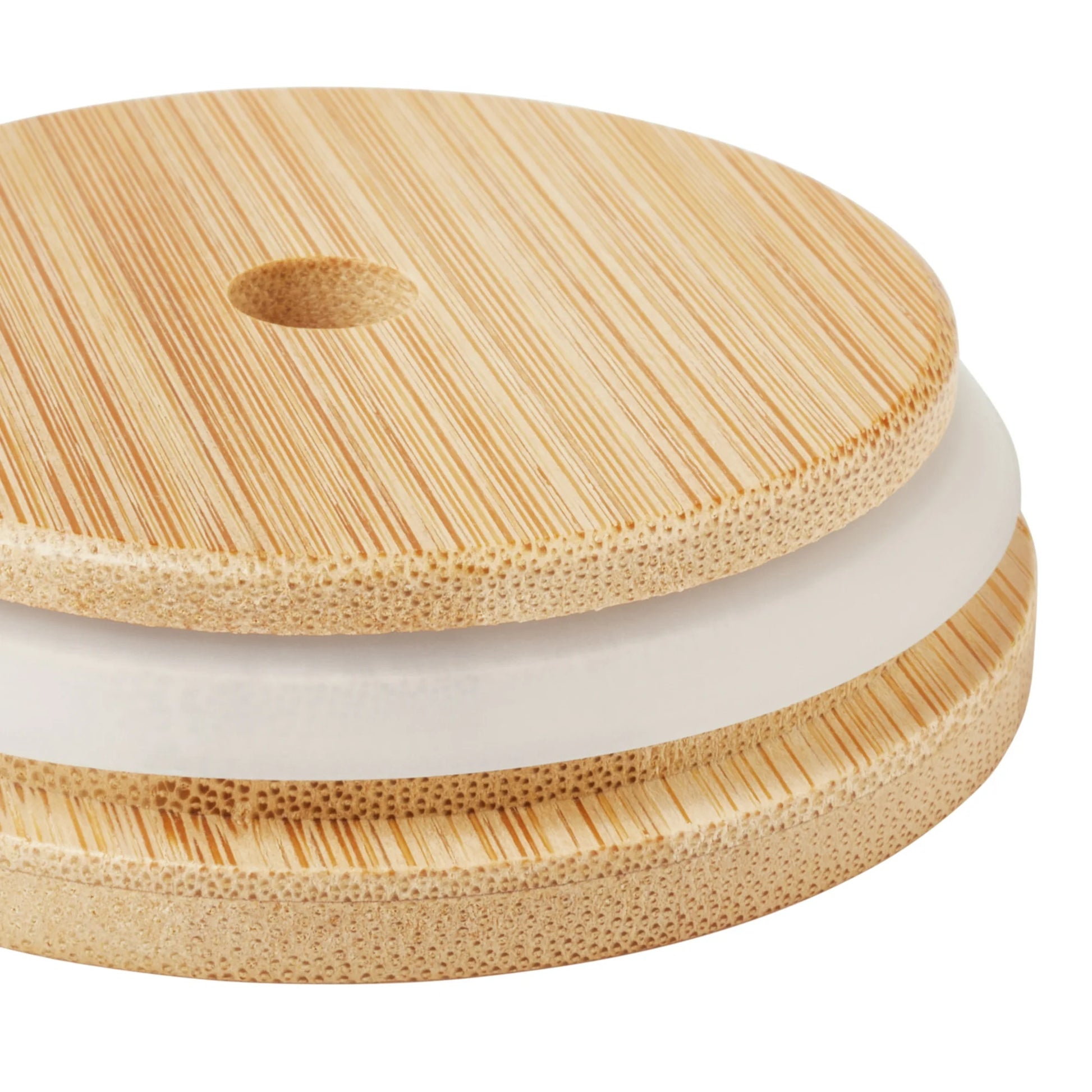 Vaso de vidrio con tapa de bambú y pajita reutilizable - CA241