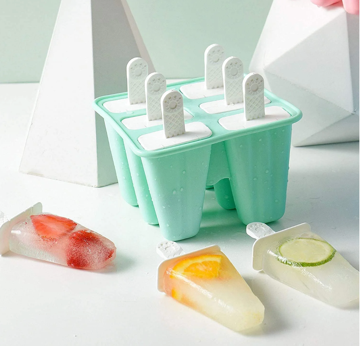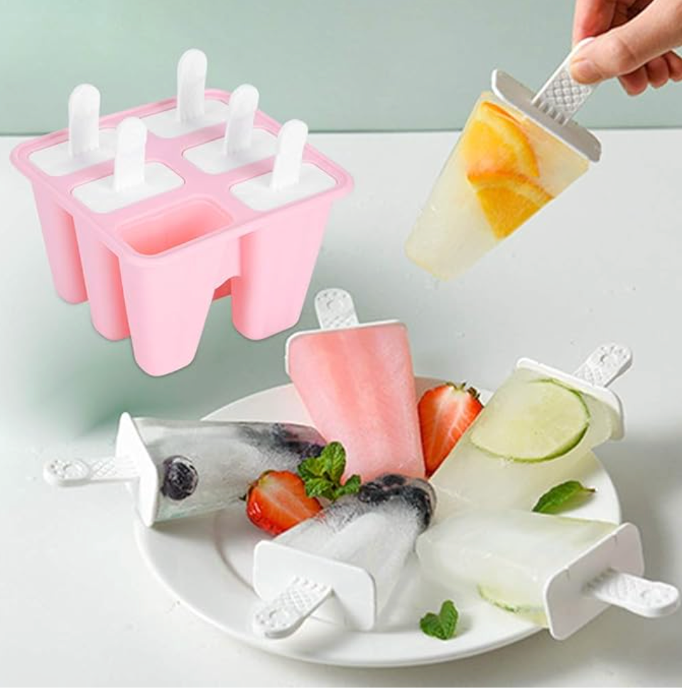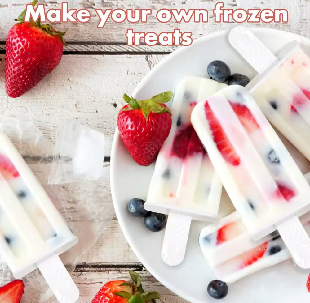 Cada molde incluye un asa antigoteo , ideal para niños. Su diseño compacto cabe fácilmente en la mayoría de los congeladores y es perfecto para el uso diario en días calurosos, fiestas o meriendas familiares.
