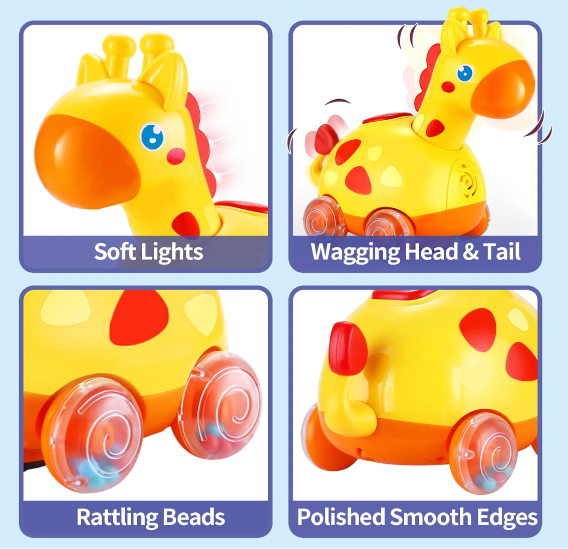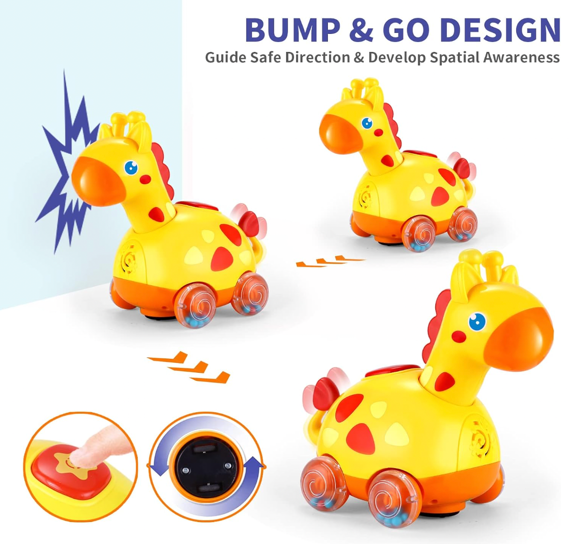 La jirafa FiveStar Bump & Go es un juguete musical interactivo diseñado para alentar a los bebés de 6 a 36 meses a gatear, moverse y explorar. 🦒✨