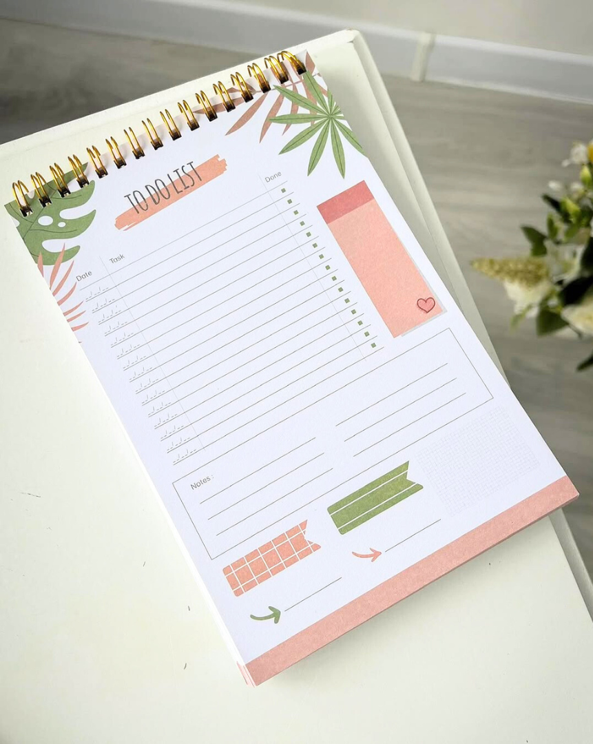 Este bloc de lista de tareas diarias es perfecto para planificar tu día, organizar tareas y mantener tus objetivos claros y elegantes. Su suave diseño botánico te permite ser productivo, estético y motivador.