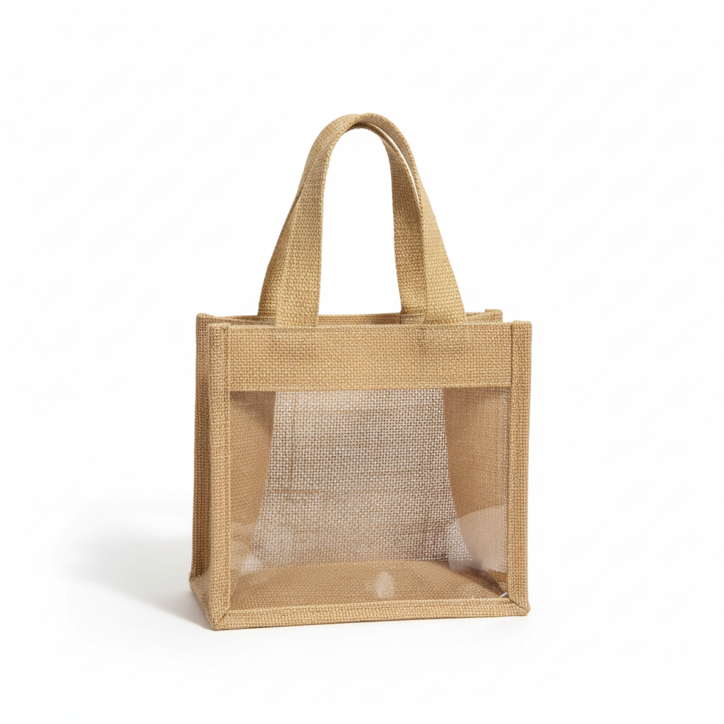 Bolsa de arpillera ecológica con panel transparente (REF: F6790-2)