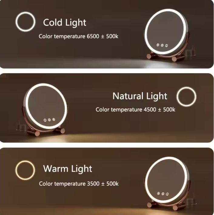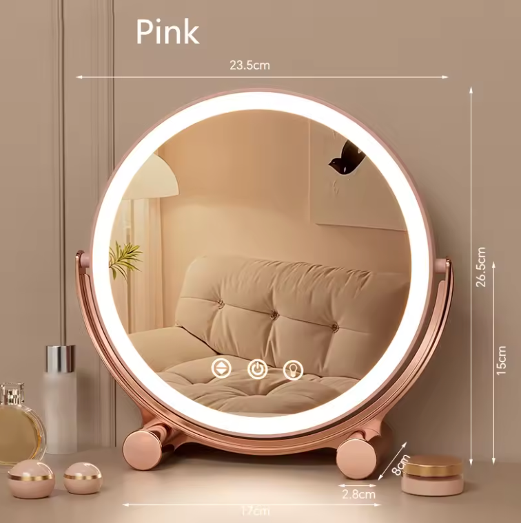 Ilumina tu rutina de belleza con nuestro Espejo de Tocador LED , diseñado con luz táctil que te brinda la iluminación perfecta para maquillaje, cuidado de la piel o tu look diario. Con un elegante diseño redondo y un soporte resistente, este espejo combina elegancia y practicidad para tu tocador, baño o escritorio.