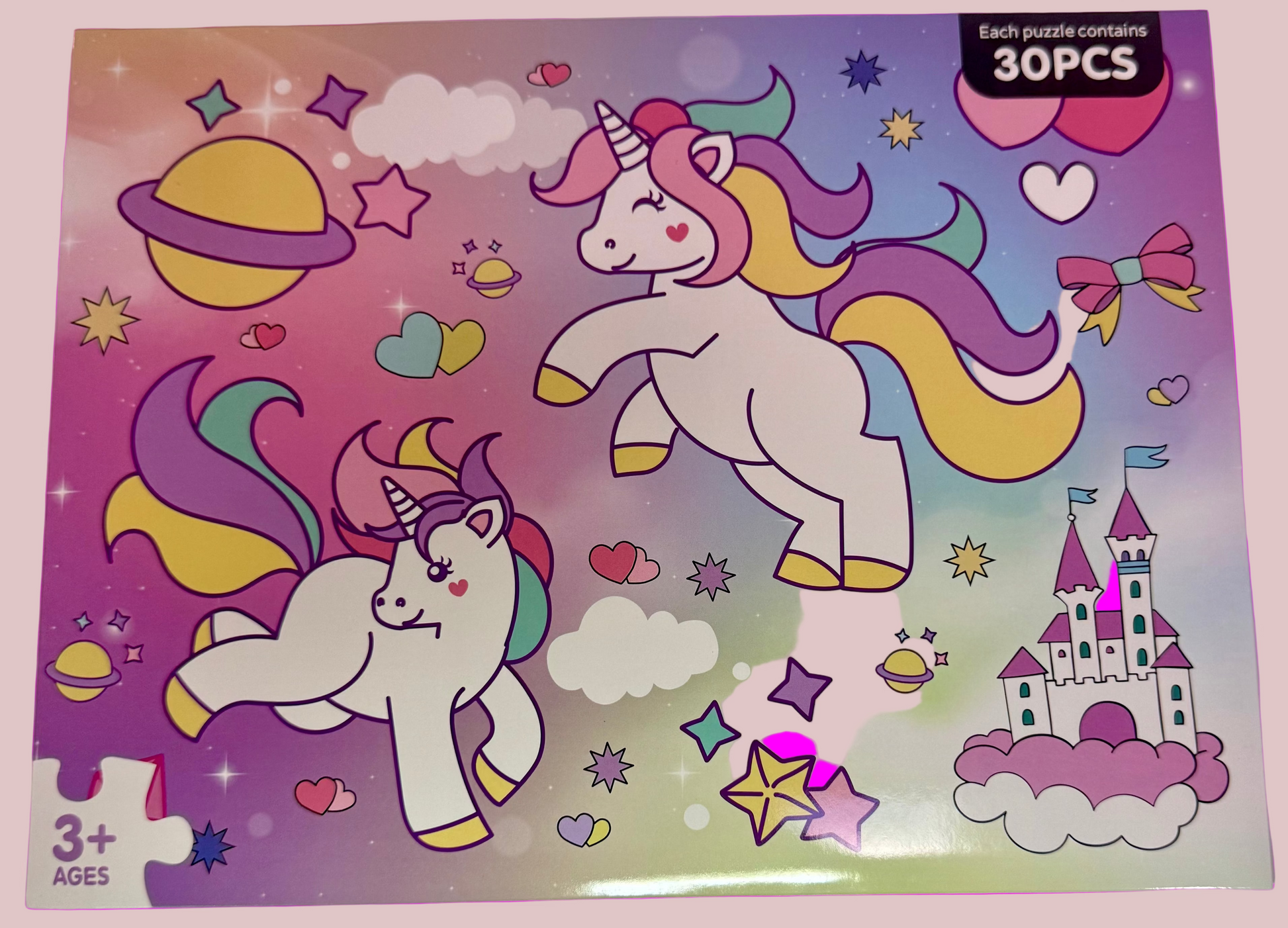 Colorful and engaging 30-piece puzzle designed for children’s learning and indoor fun. Features vibrant colors and easy-fit pieces that are perfect for little hands, helping to improve problem-solving skills and hand-eye coordination. Ideal for playtime, gifts, or party favors.