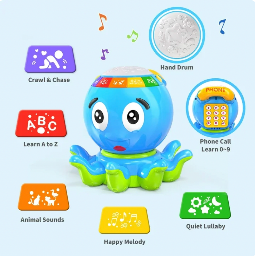 This fun Interactive Crawling Octopus Toy is designed to keep babies and toddlers moving and engaged. 🐙✨