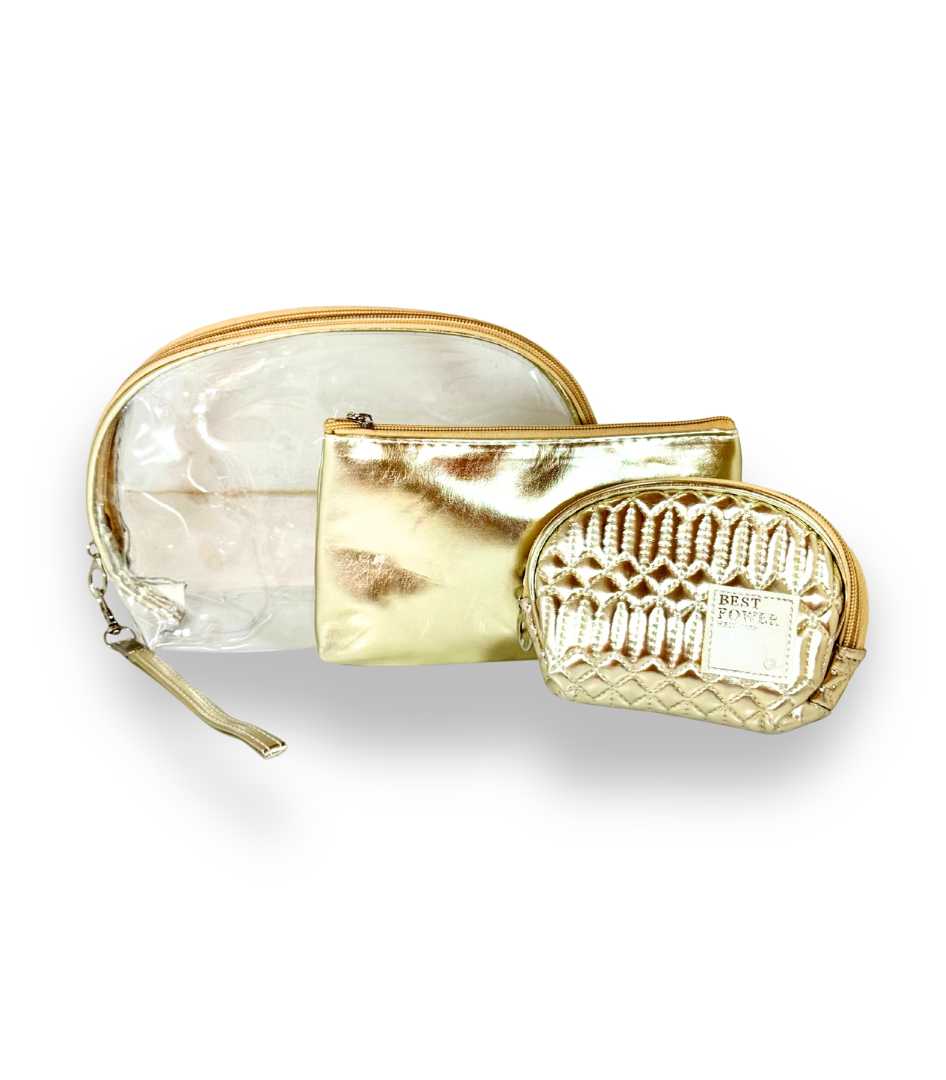- β¨ Elegant 3-piece cosmetic bag set: 1 large transparent bag, 1 medium plain pouch, and 1 small quilted bag