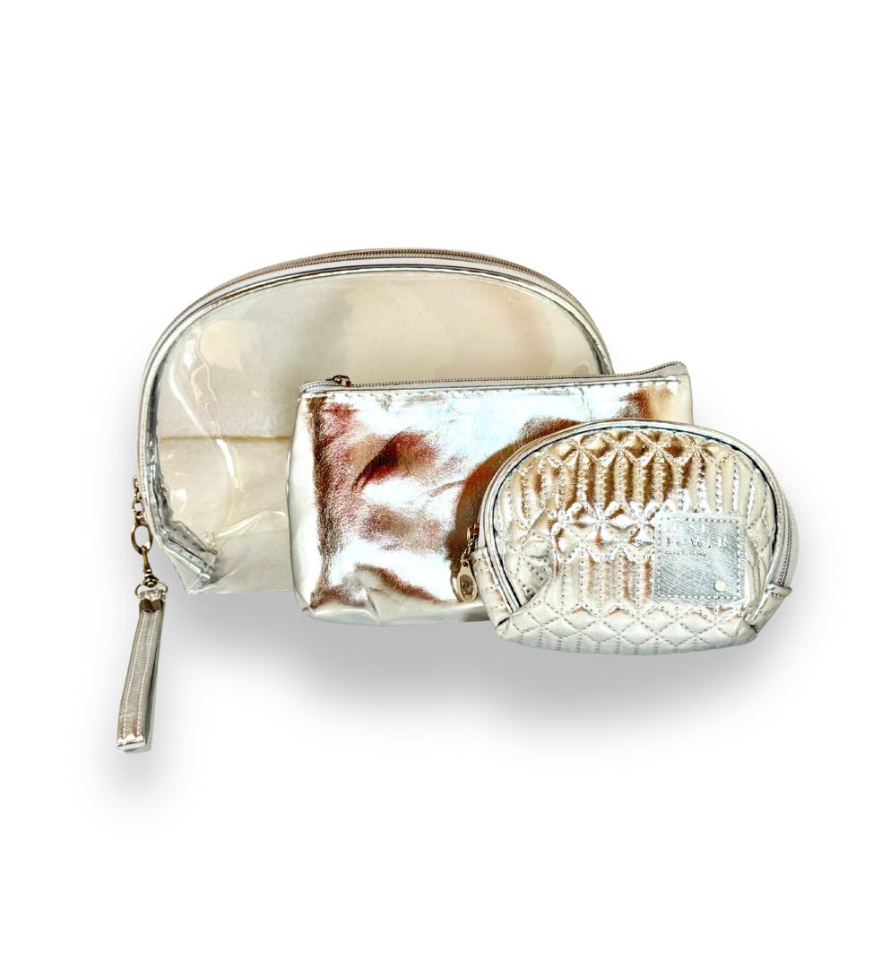 3-Pcs Quilted & Transparent Cosmetic Bag Set