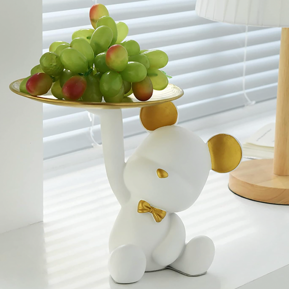 Elevate your space with this charming bear statue featuring an integrated storage tray. Crafted from premium resin with a durable metal nano plate, it combines aesthetics with practical functionality. Perfect for organizing keys, jewelry, cosmetics, or seasonal treats, this versatile piece transforms any room—living room, bedroom, office, or bathroom—into a stylish sanctuary. At 15x11x20cm, it's the ideal size for desktops and dressing tables. Let this delightful bear become both your decorative statement and your organizational solution.