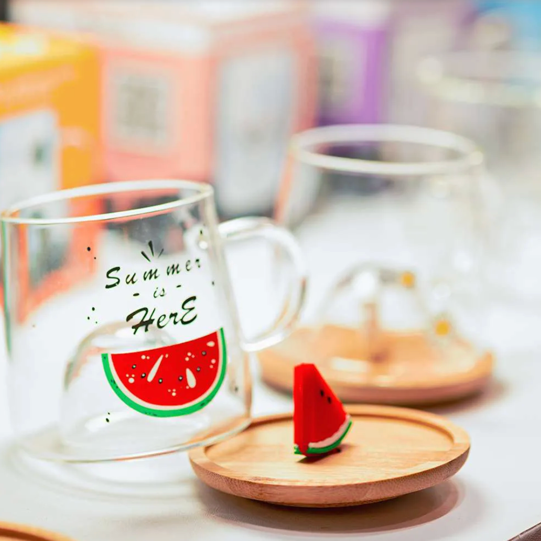 Watermelon Glass Cup with Bamboo Lid (M-003)